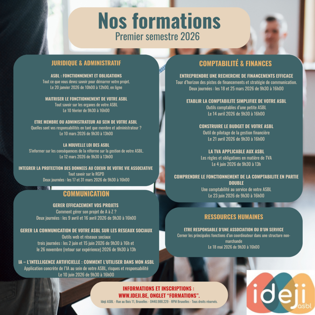 Ideji vous propose un ensemble de fiches d’information et des modèles de documents destinés à vous aider dans la gestion de votre ASBL.