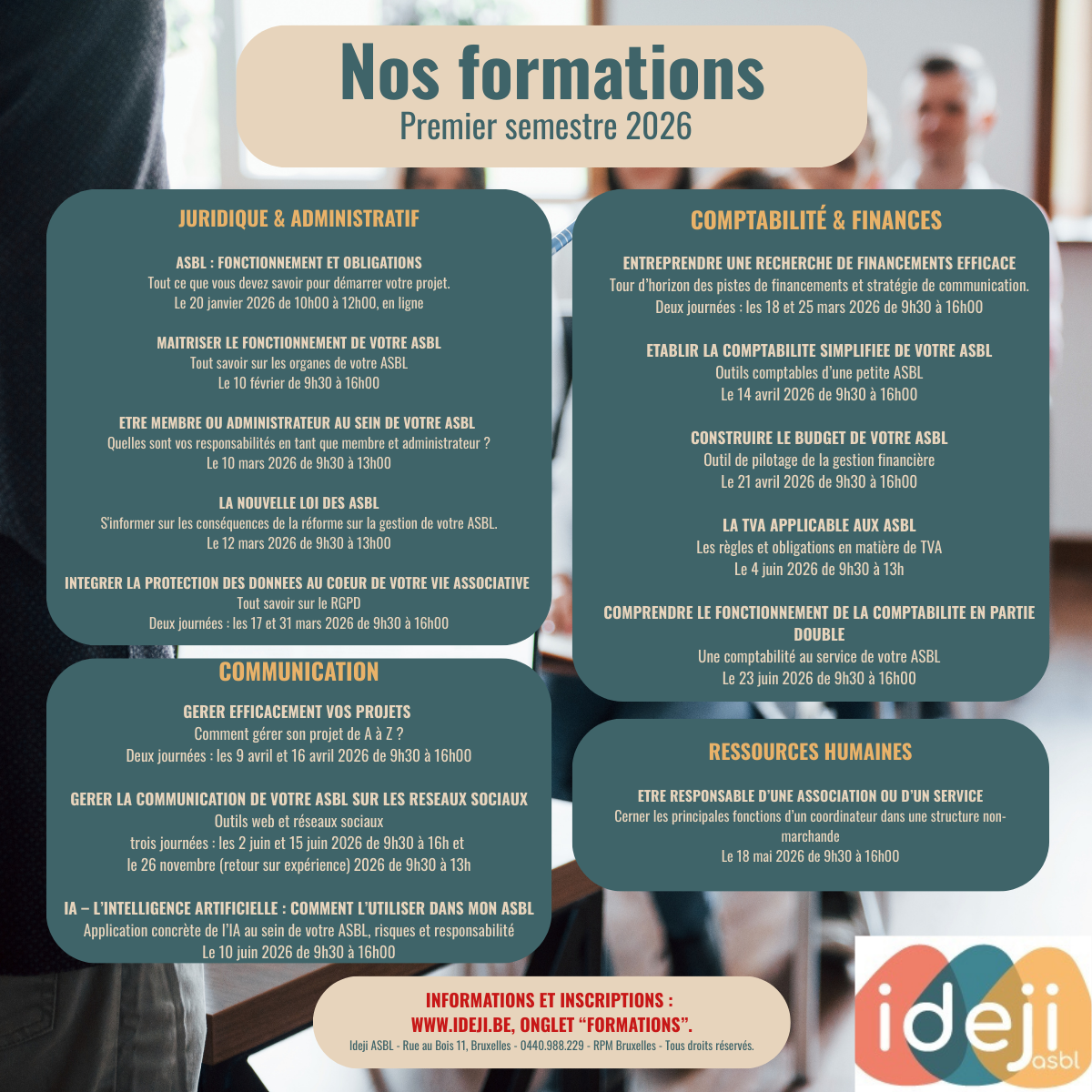 Ideji vous propose des formations destinées à développer ou renforcer vos connaissances de la gestion associative.